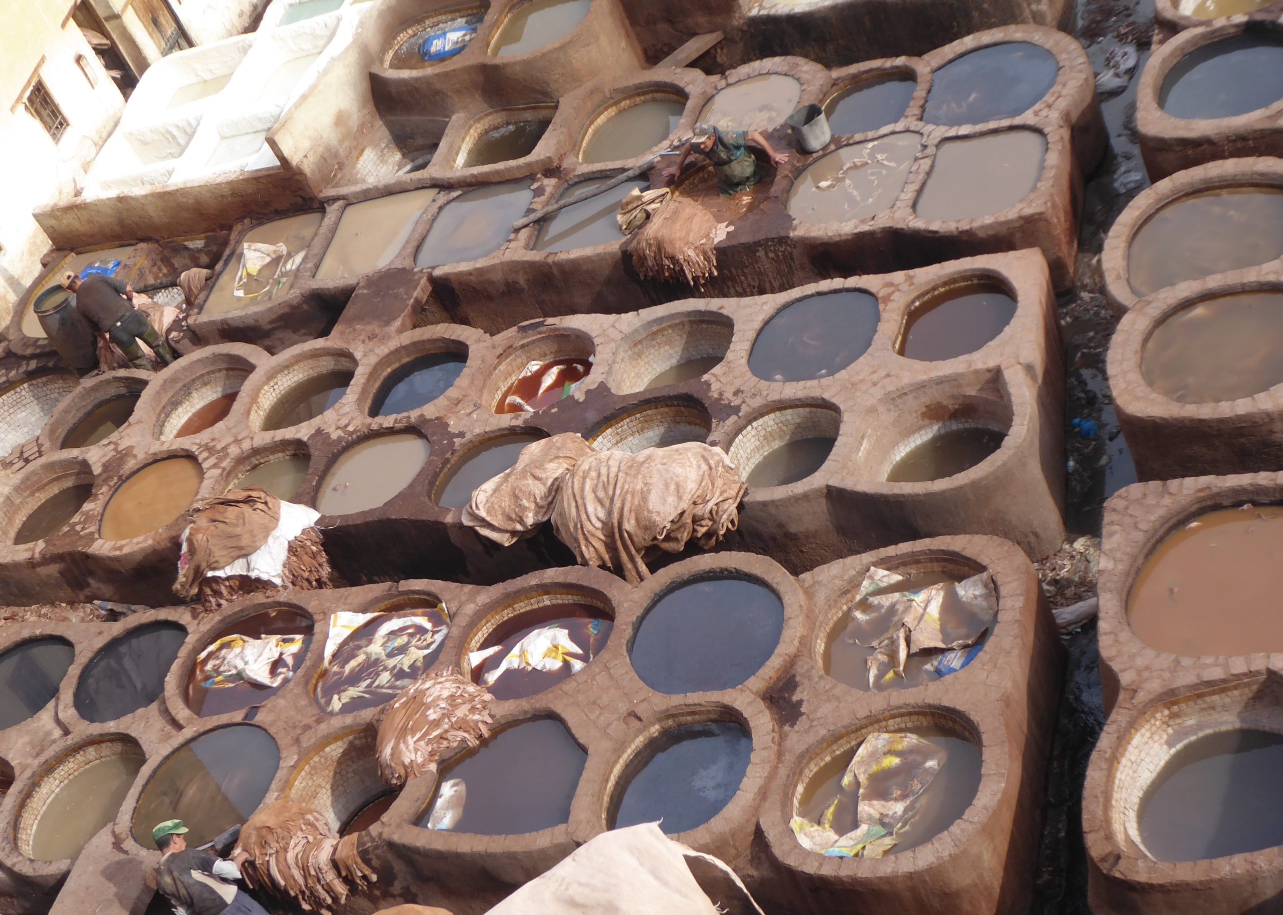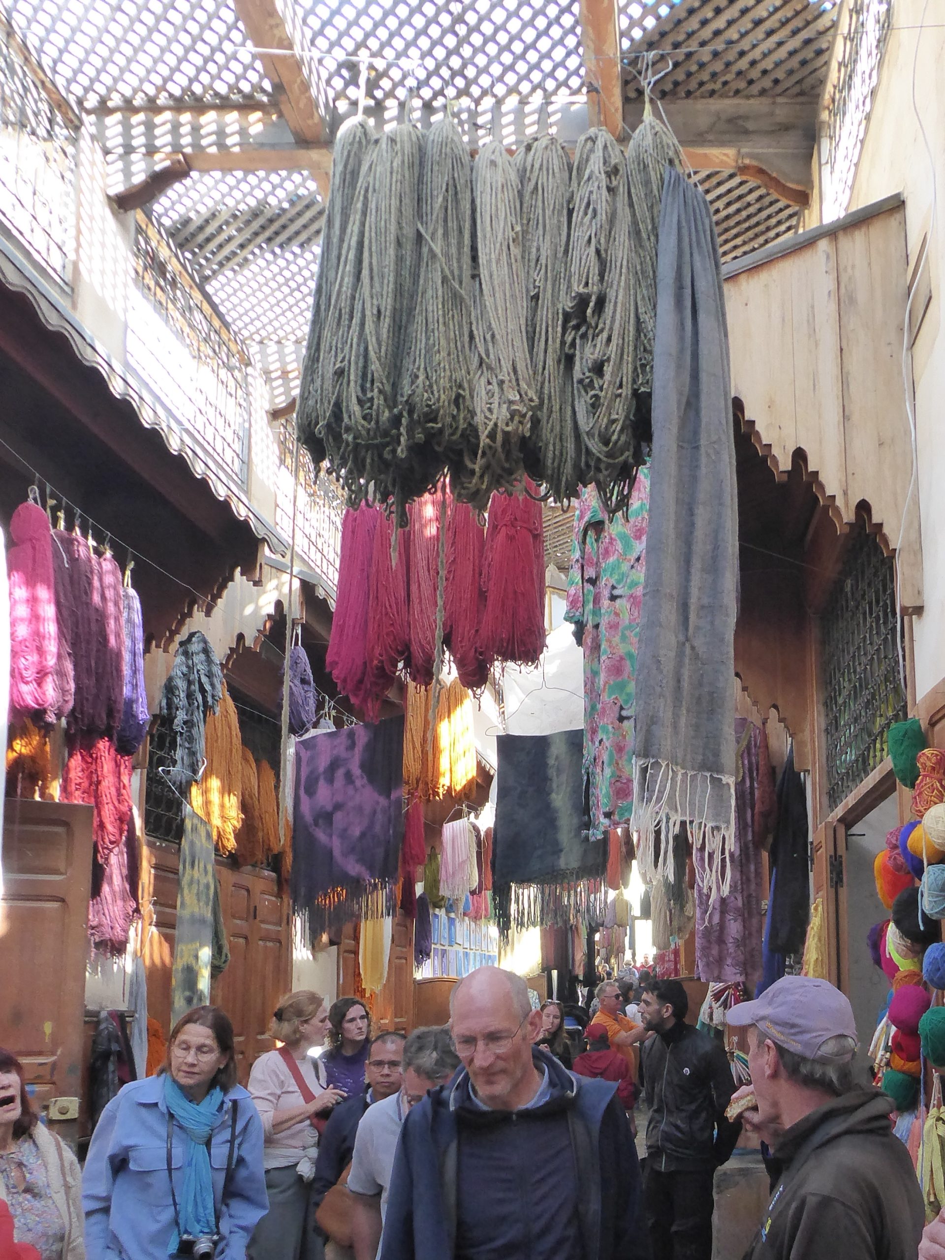 We visited the souk, its narrow, winding passages chock-full of merchants peddling spices, food, clothing, ceramics and souvenirs. Morocco’s famous leather is treated and dyed in the traditional manner here. We viewed the process from a balcony overlooking its stages.